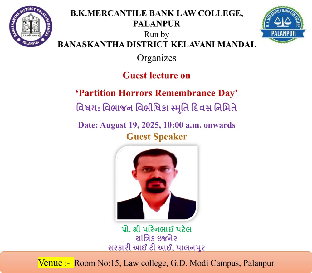 Guest Lecture on "વિભાજન વિભીષિકા સ્મૃતિ દિવસ નિમિતે"